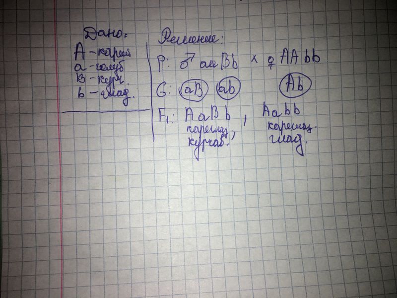 У человека карие глаза доминируют над голубыми,а курчавые волосы над гладкими. Голубоглазый курчавый мужчина, отец которого имел гладкие волосы, женился на кареглазой гладковолосой женщине из семьи,все члены которой имели карие глаза. Какие дети могут родиться от этих родителей?