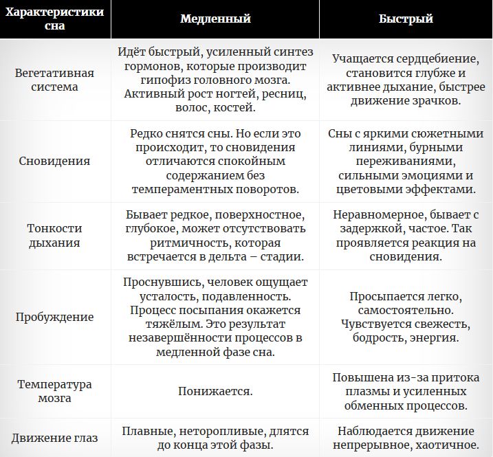 В чём отличие быстрого сна от медленного. кратко ответьте