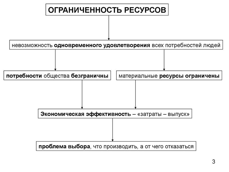 Так как потребности общества безграничны, а экономические блага ограничены, возникает противоречие - удовлетворить все потребности людей невозможно. Это противоречие решается путем выбора: отказа от одного ресурса, с целью производства другого.
