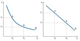 Кривая спроса имеет отрицательный наклон и отражает обратную связь между ценой и объемом товара, которое потребитель готов купить. Чем ниже цена на товар, тем большее его количество готов приобрести покупатель. Таким образом, наклон линии спроса уменьшается по мере понижения цены, и связан с принципом убывающей предельной полезности, эффектом дохода и эффектом замещения.