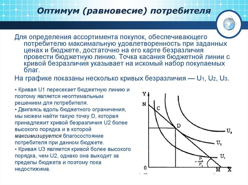Точка касания линии бюджетного ограничения данного потребителя с кривой безразличия означает рациональный выбор, обеспечивающий максимальное удовлетворение его потребностей.