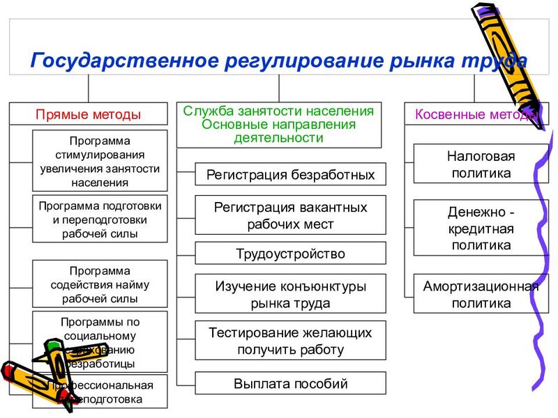 Косвенное регулирование рынка рабочей силы осуществляется государством через налоговую, кредитно-денежную и амортизационную политику правительства.