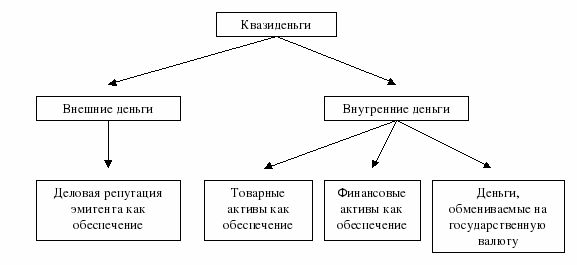 Международный Валютный фонд относит к "квазиденьгам" срочные и сберегательные депозиты, высоколиквидные финансовые инструменты, обращающиеся на финансовом рынке, страховые полисы.