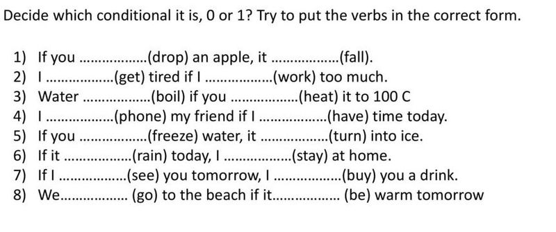8) We will go to the beach if it is warm tomorrow.