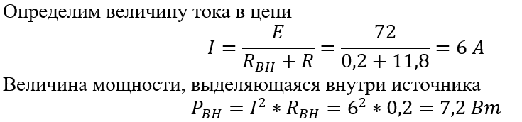 Электротехника, физика, 2 курс Заданы параметры источника напряжения Е = 72 В, rвт = 0,2 Ом и сопротивлением нагрузки R = 11,8 Ом. Определить мощность, выделяющуюся внутри источника.