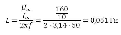 Найти индуктивность катушки если амплитуда напряжения на ее концах Um = 160 В, амплитуда тока в ней Im = 10 А и частота тока ν = 50 Гц.