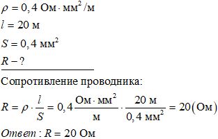 Определите сопротивление никелинового провода длиной 20м и площадью поперечного сечения 0,4 мм^2