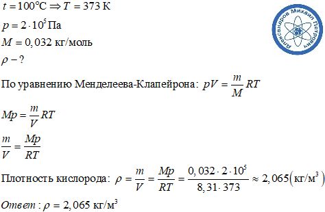 Определите плотность кислорода при 100°C и давлении 2*10^5 Па