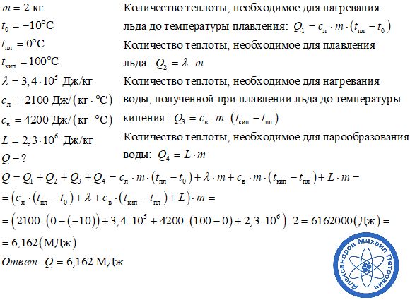 Какое кол-во теплоты требуется чтобы лед 2кг при -10С обратить в пар при100С
