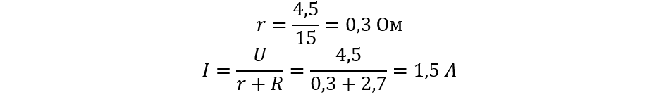 r = 4,5 В / 15 А = 0,3 Ом.
