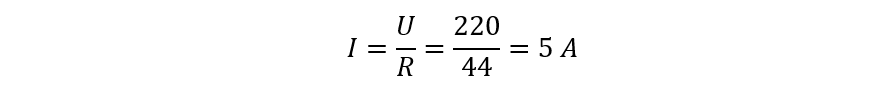 Определите силу тока в спирали электроплитки при напряжении 220 В. если ее сопротивление 44 Ом