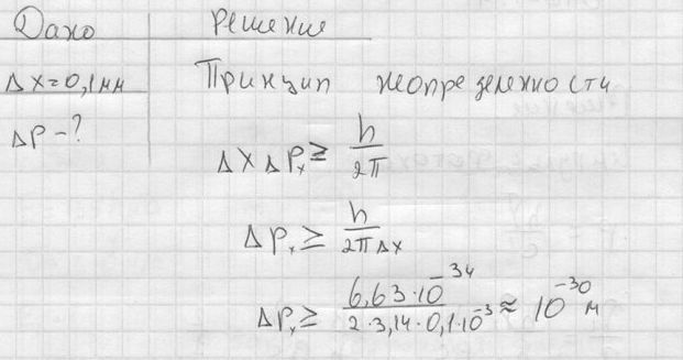 Электроны пролетают через щель шириной Δх = 0.1 мм. Неопределенность при определении импульса равна: