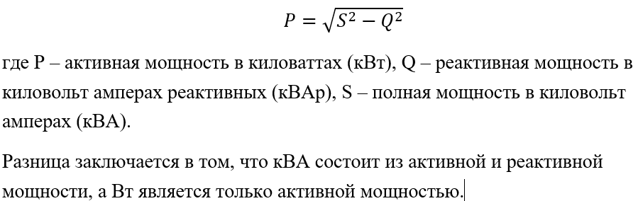 кВА- это киловольтампер, кВт- это киловатт. Так как мощность P=IU, то есть Ватт=ампер*вольт, то переводить ничего не нужно: кВА=кВт. А разница лишь в обозначении. кВА это в системе СГС, а кВт это в СИ.