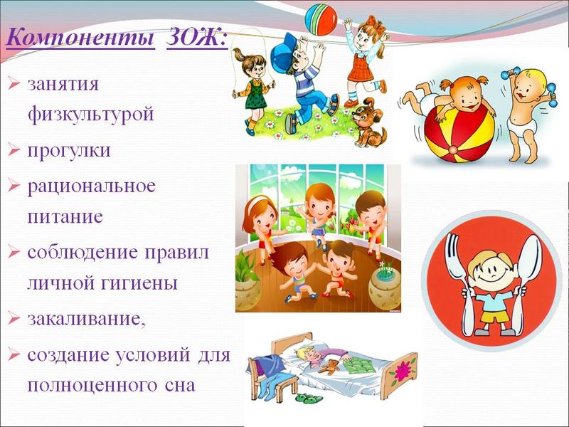 В компоненты здорового образа жизни входит соблюдение правильного питания и определенного режима дня. Кроме этого, к компонентам ЗОЖ можно отнести регулярные физические нагрузки и отказ от вредных привычек.