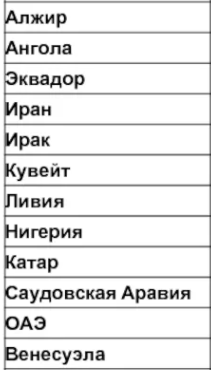 Странами-членами Организации стран — экспортеров нефти (ОПЕК) являются: 1) Россия, Мексика и Норвегия; 2) Мексика, Норвегия и Венесуэла; 3) Норвегия, Венесуэла и Алжир; 4) Венесуэла, Алжир и Иран.