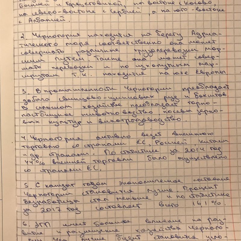 Черногория 1.Положение по отношению к соседним странам. 2.Положение по отношению к главным сухопутным и морским транспортным путям. 3.Положение по отношению к главным топливно-сырьевым базам,промышленным с/х районам. 4.Положение по отношению к главным районам сбыта продукции. 5.изменение ЭГП во времени. 6.Общий вывод о влиянии ЭГП на развитие и размещение хозяйства страны.