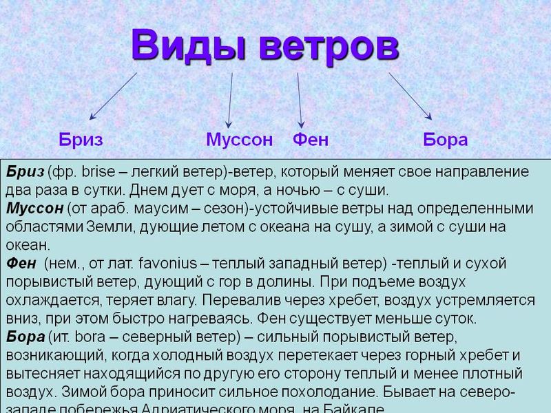 Какие виды ветра бывают?