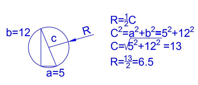 В треугольнике ABC AB=5, BC=12, угол ABC=90 градусов. Найдите радиус описанной около треугольника окружности.