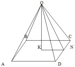 Площадь боковой грани ODC найдём по формуле площади равнобедренного треугольника.