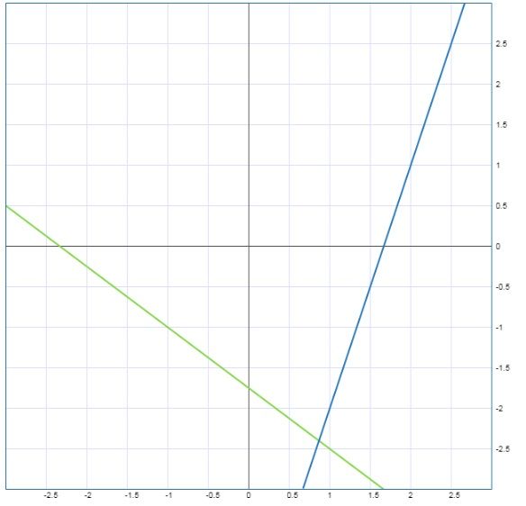 Ответ: графики пересекаются в точке (13/15; - 2,4).