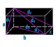 Для диагоналей боковых граней и основания катетами являются ребра параллелепипеда, а для четвертой диагонали, катеты представляют собой боковое ребро и диагональ основания.