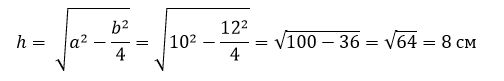 И по специальной формуле вычислить высоту, где а = 10, b = 12