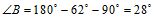 В прямоугольном треугольнике угол А равен 62 градусам. Найдите угол b.