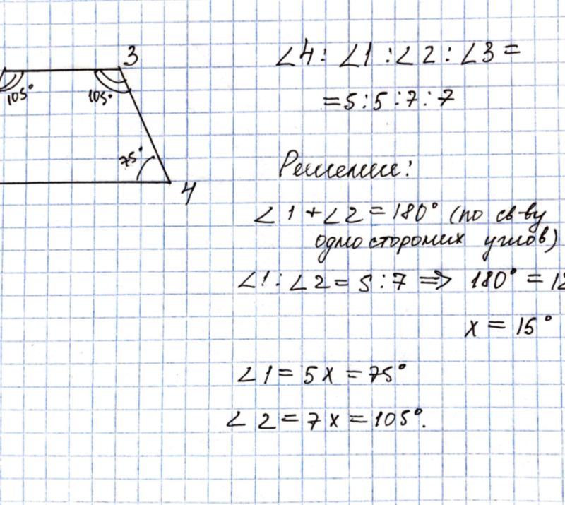 Могут ли углы трапеции, взятые в последовательном порядке, относиться как 5:5:7:7 ?