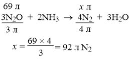 Вычислите объем азота, который образуется при взрыве смеси, содержащей 69 л оксида азота (I) и достаточное количество аммиака. Объемы газов измерены при одинаковых условиях. Ответ запишите в литрах с точностью до целых