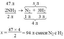Вычислите суммарный объем газов, которые образуются при полном термическом разложении 47 л аммиака. Объемы измерялись при одинаковых условиях. Ответ дайте в литрах с точностью до целых