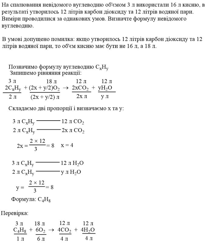 На сплавлення невідомого вулицю об'ємом 3 л використали 16 л кисню в результаті утворилось 12 літрів карбон діоксиду та 12 літрів водяної пари виміри проводилися за однакових умов визначте формулу невідомого вуглеводнюпоможіть пожалуста