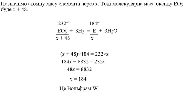 Оксид металічного елементу ЕО3 масою 232 г відновили Н2 . добули метал масою 184г. що це за метал решить с помощью уравнения реакции