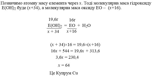 При розкладанні гідроксиду двовалентного металічного елементамасою 19.6 г утворюється оксид двовалентного металу масою 16 г. визначте метал. решить с помощью уравнения реакции
