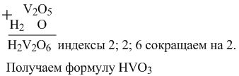 2) определяем, какой именно кислоте соответствует кислотный оксид V2O5. Для этого можно применить простенькую методику, которая не всегда применима: к молекуле кислотного оксида в столбик прибавляем молекулу воды: