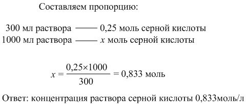 Рассчитайте концентрацию 300 мл раствора, содержащего 0,25 моль серной кислоты :
