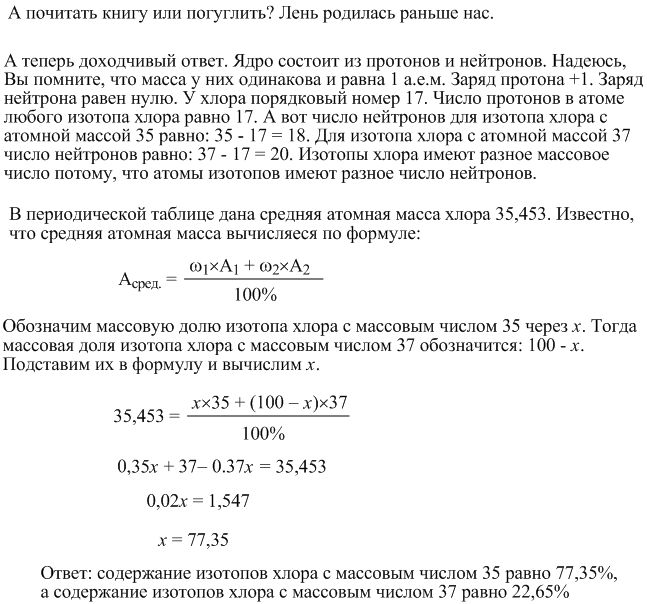 Нужна помощь по дз химии. Так как за лето все забылось Определите атомный состав изотопов хлора 35Cl и 37Сl. Почему изотопы хлора имеют разное массовое число?