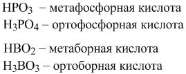 Орто и мета кислоты различаются по содержанию числа атомов кислорода в молекуле кислоты: