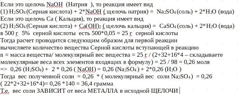 Задача изложена не корректно. При взаимодействии кислоты со щелочью в результате реакции образуется сульфат (соль) и вода. Масса соли зависит от того какая щелочь принимала участие в реакции: