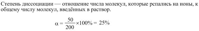 Общее количество растворенных молекул в растворе - 200. 50 их молекул распадаются на ионы. Определите степень диссоциации