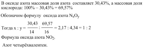 Химия, задачка. Спасибо заранее) Определите формулу оксида азота, если массовая доля азота в нём составляет 30,43%. укажите валентность азота.