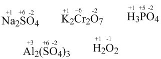 Какую степень окисления имеют атомы всех элементов, Входящих в состав соединений: Na2SO4, H3PO4, K2Cr2O7, Al2(SO4)3, H2O2 Расставьте степени окисления.