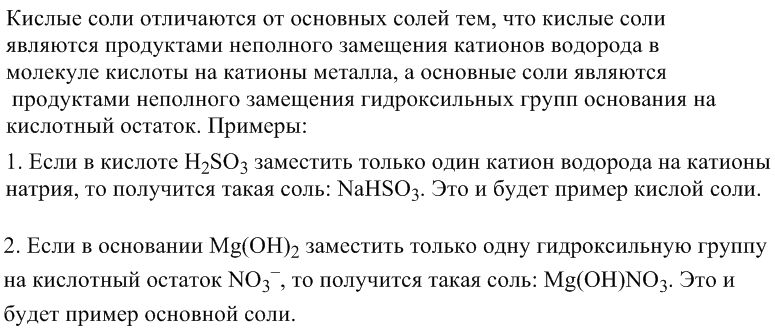 Чем отличаются кислые соли от основных? Чем отличаются кислые соли от основных?