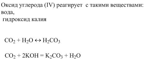 Выбрать с какими из перечисленных веществ реагирует оксид углерода (|v), оксид фосфора (v), оксид магния, вода, хлорид меди (||), гидроксид железа, гидроксид калия, серная кислота
