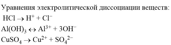 Напишите уравнения электролитической диссоциации веществ HCl; Al(OH)3; CuSO4