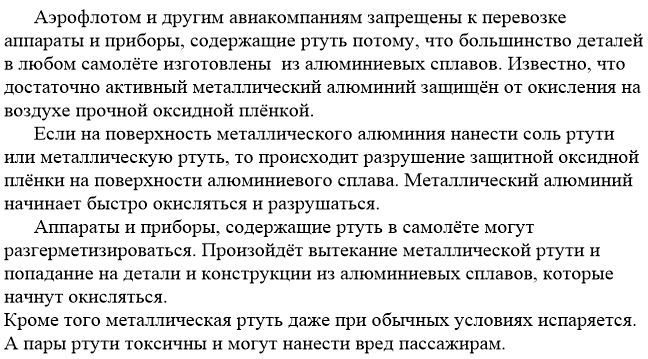 Почему Аэрофлотом и другим авиакомпаниям запрещены к перевозке аппараты и приборы, содержащие ртуть?