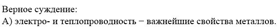 Укажите верное суждение: А) электро- и теплопроводность - важнейшие свойства металлов; Б) все металлы - твёрдые и хрупкие.