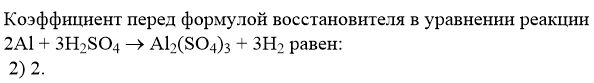 Коэффициент перед формулой восстановителя в уравнении реакции Al + H2SO4 ---> Al2(SO4)3 +H2 равен: 1) 5; 2) 2; 3) 3; 4) 4.
