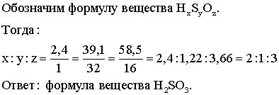 Установите формулу вещества, массовые доли которого составляют: H-2,4%, S -39,1% и О-58,5%.