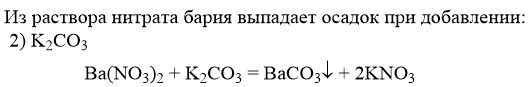 Из раствора нитрата бария выпадает осадок при добавлении:1) CaCO32) K2CO33) KCl4) KNO3