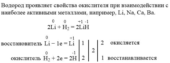 Водород проявляет свойства окисления при взаимодействии с